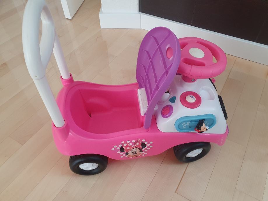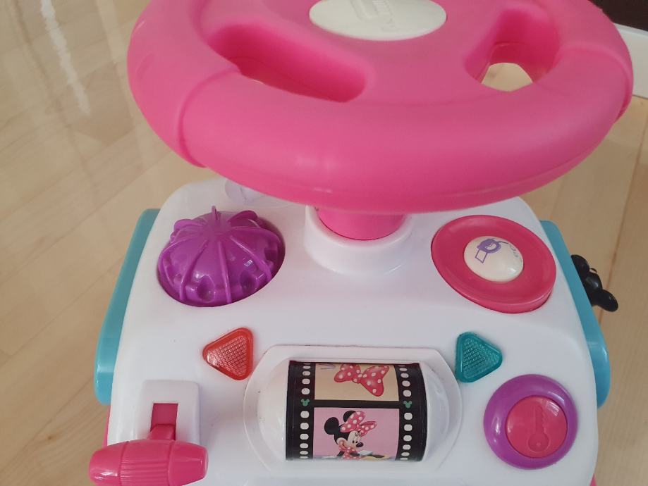 Prodajem guralicu autic za djevojčice s omiljenim Disney likom - Minnie Mouse. Guralica je kao nova i samo je kratko korištena u stanu. Ista je predviđena za djecu od 12 do 36 mjeseci. Uz vožnju volanom koji okreće prednje kotače u smjeru gdje dijete želi voziti, guralica uz to posjeduje različite zvukove - glazbu kao sto su zvuk motora, truba, omiljene pjesme iz crtića Minnie. Volan i kotači se okreću u svim smjerovima. Na guralici su 6 pomičnih elemenata za razvoj dječije motorike. Autic se nalazi u Zagrebu - istok i prodaje se za 150 kn dok je nova u dućanu 350 kn. Preuzimanje po dogovoru.