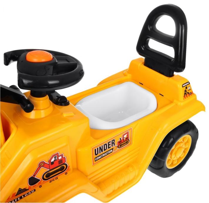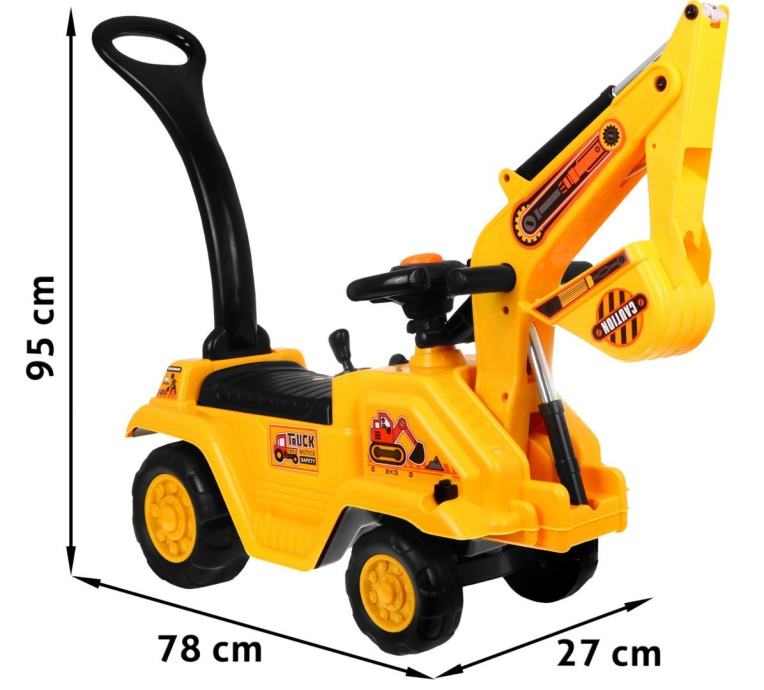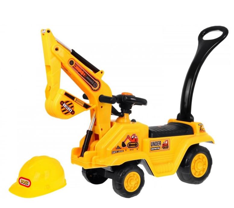 Ovaj model bagera jedno je od najzanimljivijih građevinskih vozila na tržištu. Vozilo se kreće na kotačima, a pomoću poluge je moguće pomicati žlicu. (pokupiti pijesak). Komplet dolazi s kacigom - neophodnom za sve građevinske radove. Igračka je izrađena od visokokvalitetne plastike.