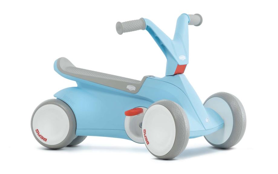 BERG GO2 je inovativna guralica i pedalina u jednom, razvijena za najmlađe (10–30 mjeseci). Najprije dijete vozi guralicu bez pedala, kasnije ih jednostavno preklopi i uči pedalirati. Četiri kotača osiguravaju maksimalnu stabilnost, a tihi kotači ne ostavljaju tragova – idealno za unutarnju i vanjsku upotrebu. Može se koristiti s pedalama ili bez – pedale se lako preklapaju.