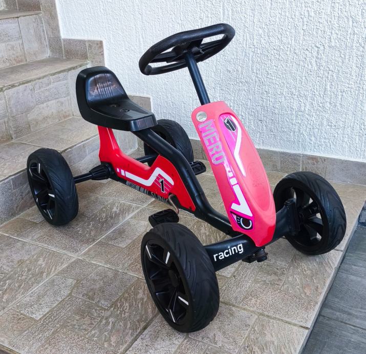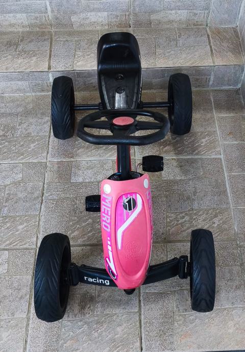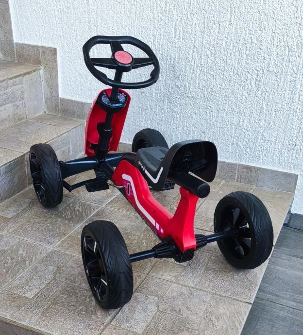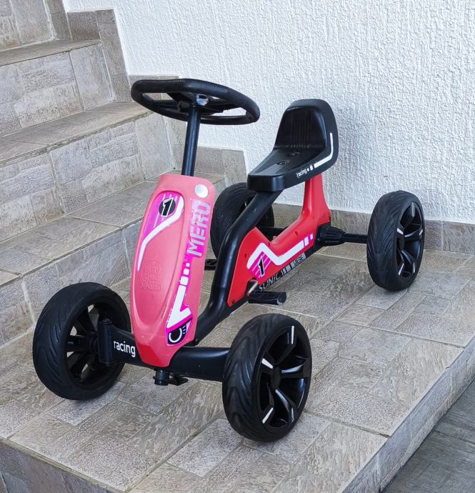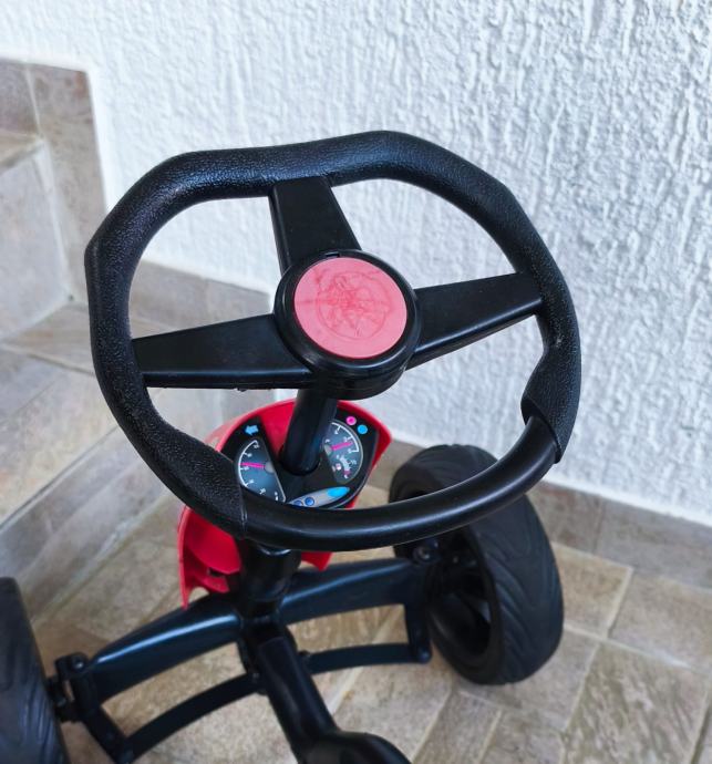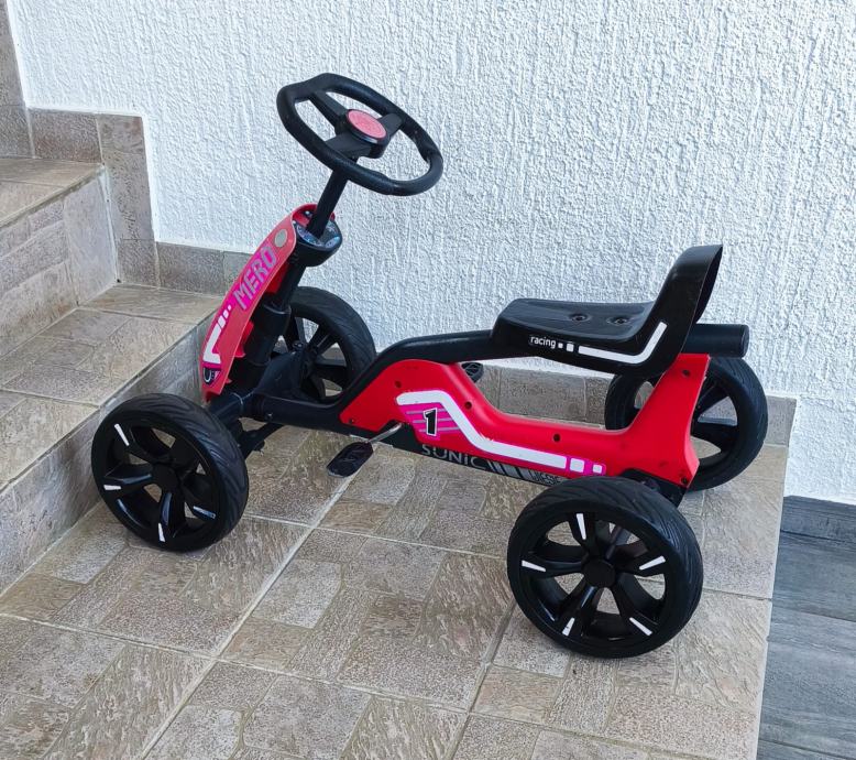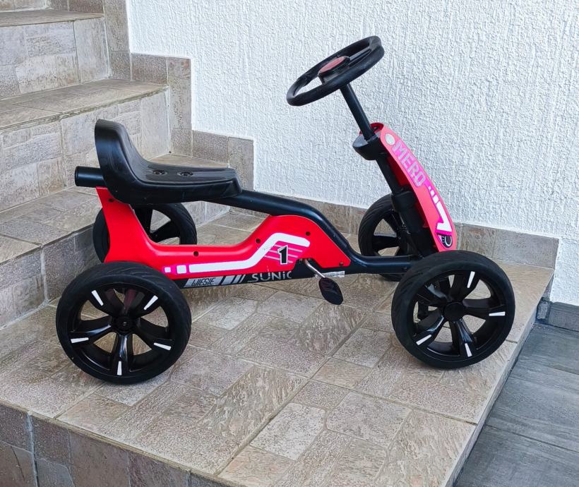 Dječji auto na pedale sa slika, malo korišten stanje odlično, sa minimalnim tragovima korištenja, stanje vidljivo na slikama. Autić je 85 cm dužine, širina 50 cm, kotači promjera 24 cm, visina sjedala 33 cm, odmak sjedala naprijed, nazad - tri pozicije, nosivost do 45 kg.