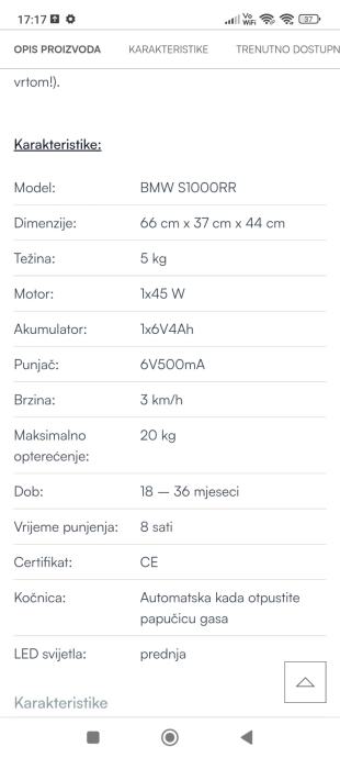Dječji motor na akumulator marke BMW kao sa slike sa punjačem.