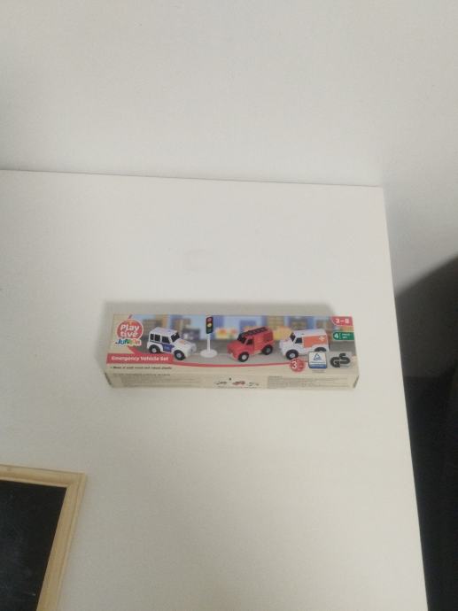 3 drvenih autića.Policija,vatrogasci,hitna pomoć.Autići imaju magnet sa vožnju jedan iza drugog