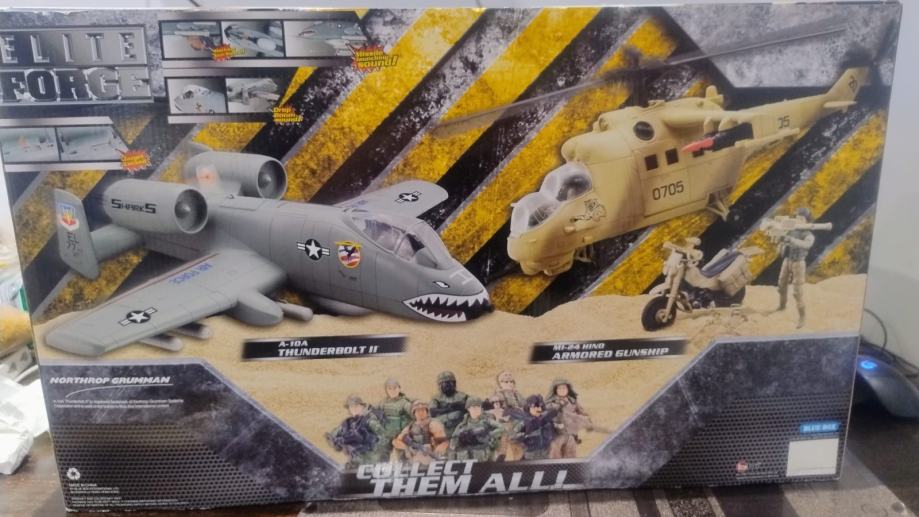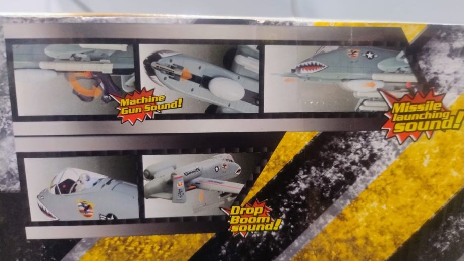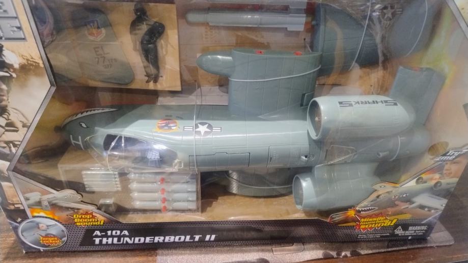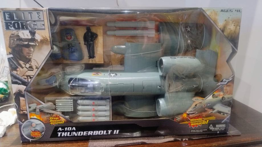 Prodajem novi, nekorišteni i originalno zapakirani model aviona A-10 Thunderbolt II 1:18 iz serije modela Elite force proizvođača Blue-Box. Radi se o velikom i detaljnom modelu aviona A-10 Thunderbolt II, vrlo rijetkom na tržištu u ovako odličnom stanju. Model ima zvučne efekte, široku paletu naoružanja, funkciju odbacivanja bombi i raketa, figuru pilota te je kompaktibilan sa drugim figurama i vozilima iz Elite force serije modela. Savršeno kako za igru tako i za display. Sve je u savršenom i ispravnom stanju. Veličina modela je oko D: 55 cm, Š:35 cm i V: 15 cm. Uz predmetni avion na poklon dolaze nove i originalno zapakirane 2 figure vojnika iz iste serije (zadnje 3 slike).