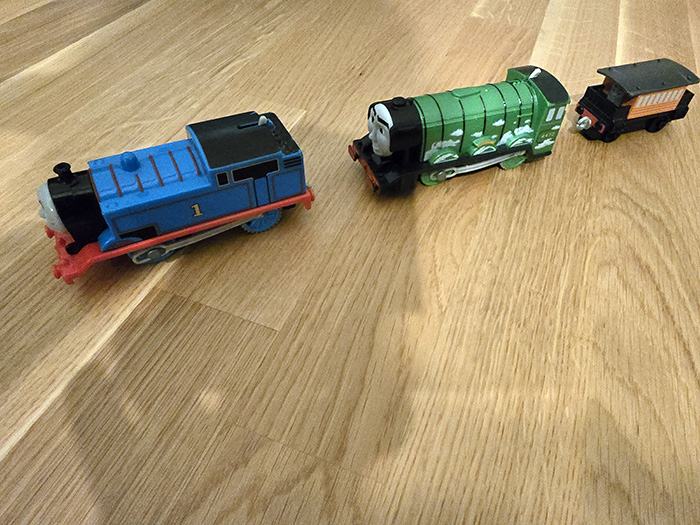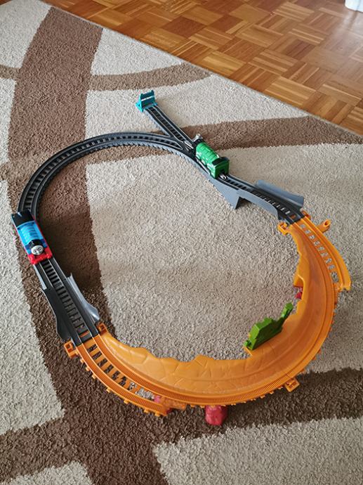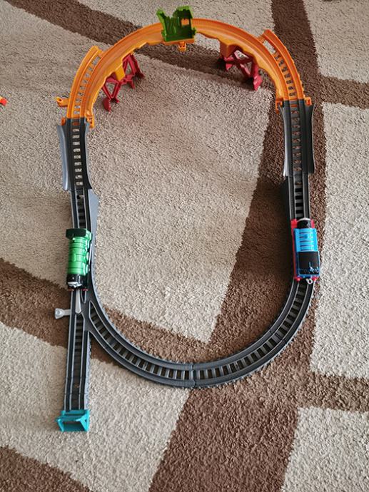 Breakaway bridge set, kompletan osim što nedostaje mala zastavica na mostu. Uz njega idu Thomas i The Flying Scotsman, oba vlakića na dvije AAA baterije + jedan vagončić. Bez originalne ambalaže.