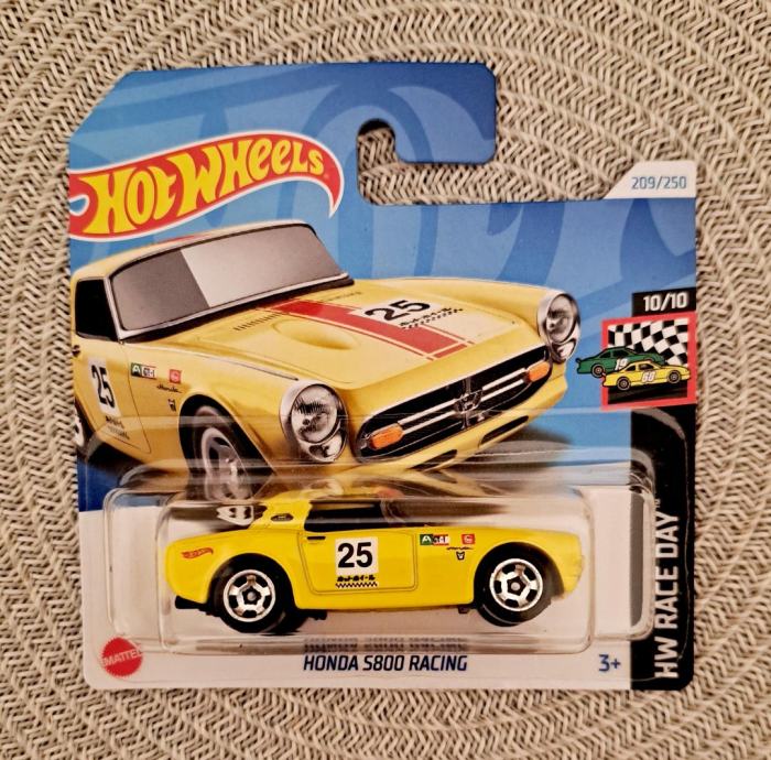 HONDA S800 Racing, mali je sportski automobil s dvoja vrata koji je Honda proizvodila od 1966. do 1970. godine i bio je Hondina vodeća ponuda, zamijenivši S600. Pokretao ga je 0,8L linijski 4 cilindrični motor, koji se vrtio do 9500 okretaja u minuti, sa 4 stupanjskim ručnim mjenjačem. Često je opisivan kao najbrži 1-litreni automobil na svijetu, zbog motora s velikim brojem okretaja. Bio je dostupan u izvedbi coupe i roadster. HW dizajner Fraser Campbell je autor odljevka replike S800 koji je,u stvarnosti, pobijedio na utrci 12 sati Suzuke a kojeg su pripremili za utrke u Honda Racing Service Centar. Debitirao je, kao New Model, u ediciji za 2024. pod brojem 209/250, serija HW Race Day kao 10/10. Atraktivna žuta boja i ukrasne naljepnice, crvena traka i broj 25 čine ga privlačnim ne samo sakupljačima i kolekcionarima..
