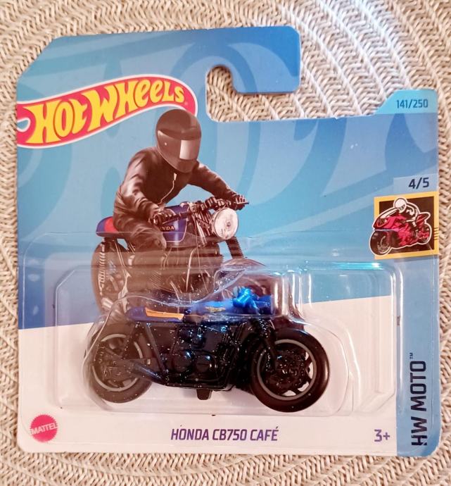 HONDA CB 750 CAFE je legendarni japanski motocikl sa značajkama koje su drugim motociklima, u tom trenutku, bila nedostupna. HW dizajner Fraser Campbell je autor odlijeva za prvo izdanje iz 2023. (New Model). Nalazi se u seriji HW Moto pod brojem 4/5, dok je broj u godišnjem izdanju 141/250. U ponudi je bila još jedna Honda , bijele boje sa crvenim sjedalom. Honda sa slike je u mornaričko plavoj boji. Pojavit će se i u 2024.u zelenoj boji. U stvarnosti, Honda CB 750 se proizvodila od 1969.- 2003. a model CB 750 Cafe 1975. – 1978.