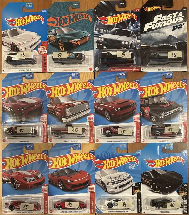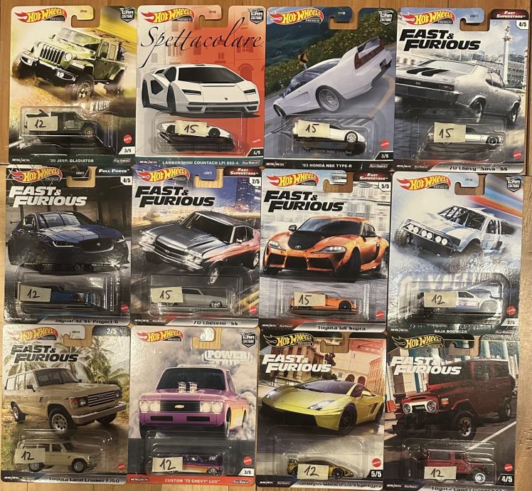 Cijena na slici, mainline 3-4€, fast and furious premium setovi 75€/kom