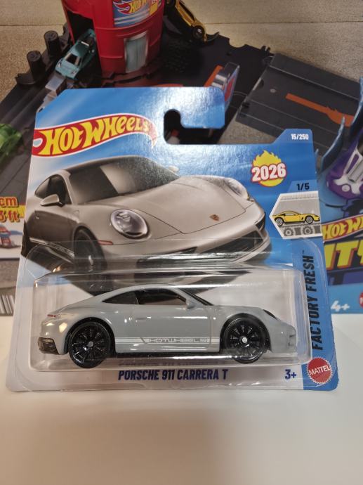 • Prodajem Hot Wheels Porsche 911 Carrera T u elegantnoj sivoj boji s crnim felgama.