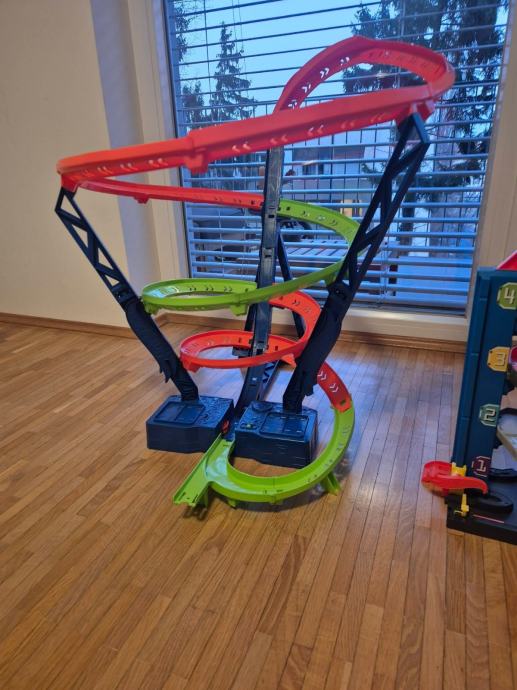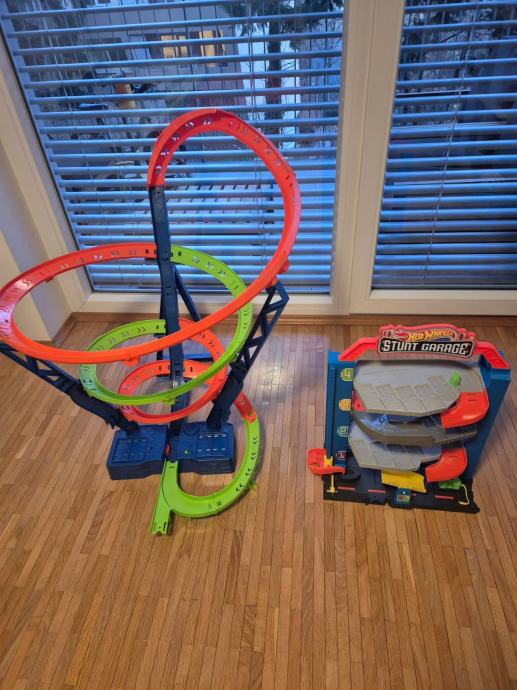 Prodajem u setu Hit Wheels garazu i cetverostruki loop. Loop ima elektromotor pohonjen bayerijama koji izbacuje autice u petlju. Stanje je doslovno kao novo, nema vidljivih tragova koristenja, a svi dijelovi su na broju. Zagarantirana zabava!