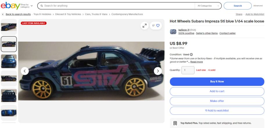 Hotwheels Subaru Impreza WRX, u odličnom stanju.