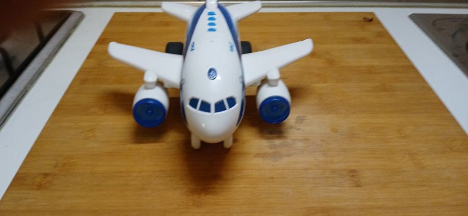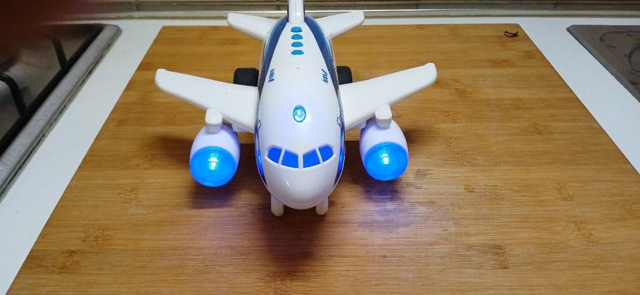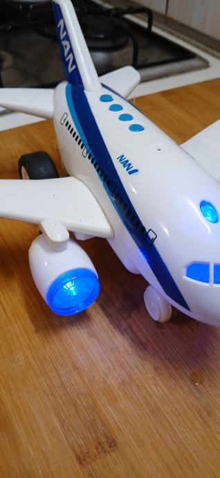 Igracka avion kombinacija mehanickog pogona na kotace i zvucnih i svjetlosnih signala na prifisak gumbi odozfora.Napajanje E LR4R baterije dolaze sa igrackom.šaljem pošta ili tisak.0958241802