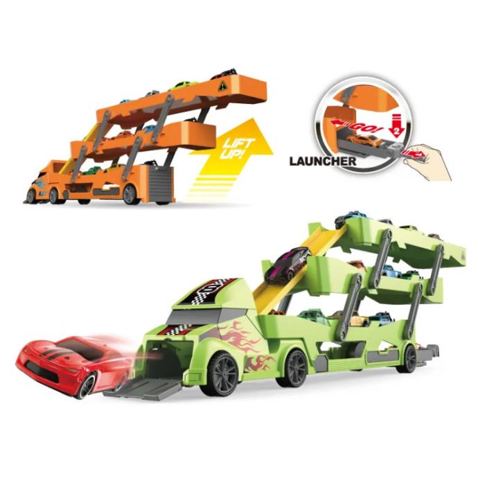 Kamion ima funkciju ispaljivanja autića za dodatnu zabavu i akciju.