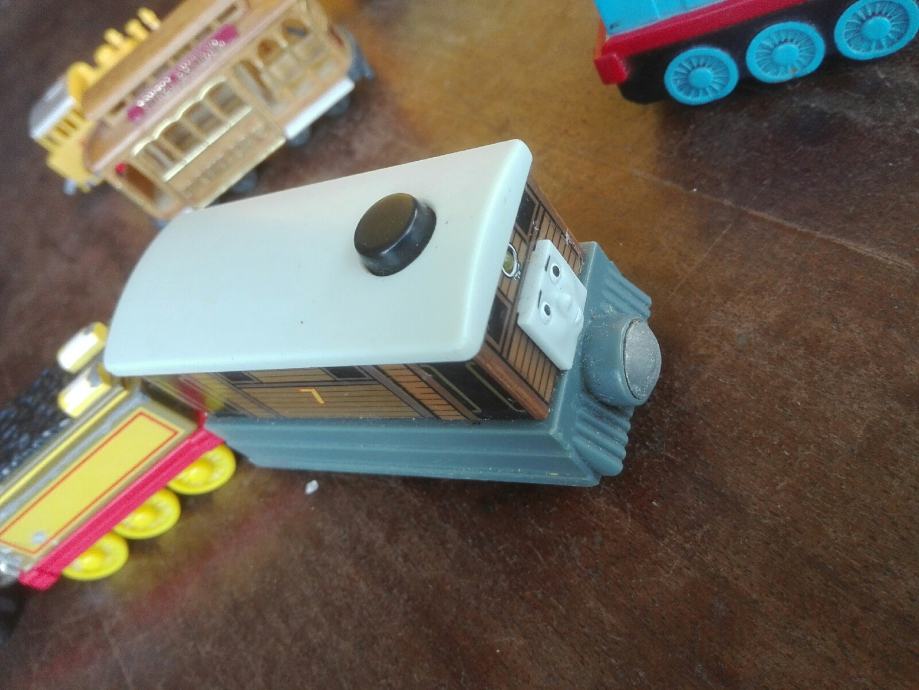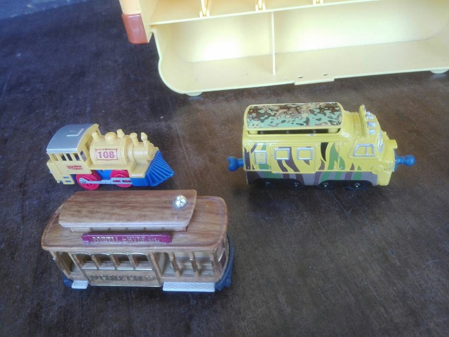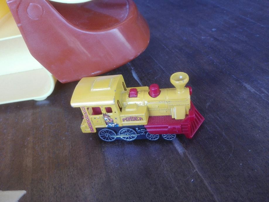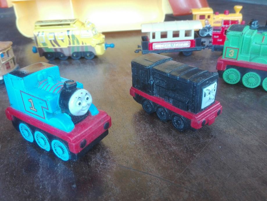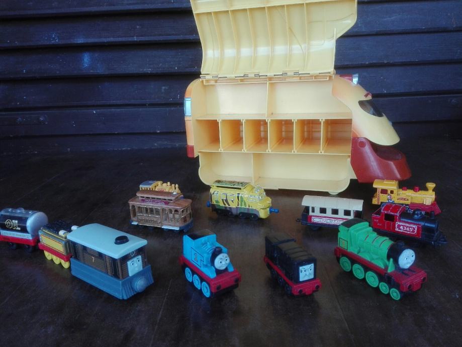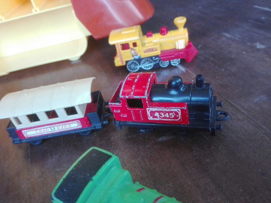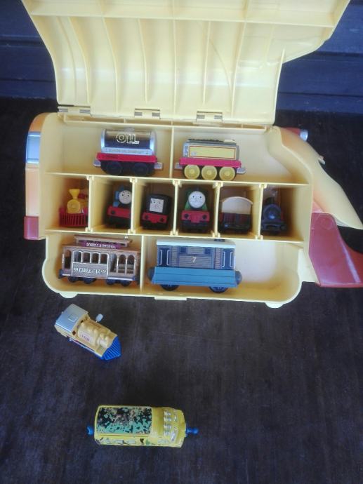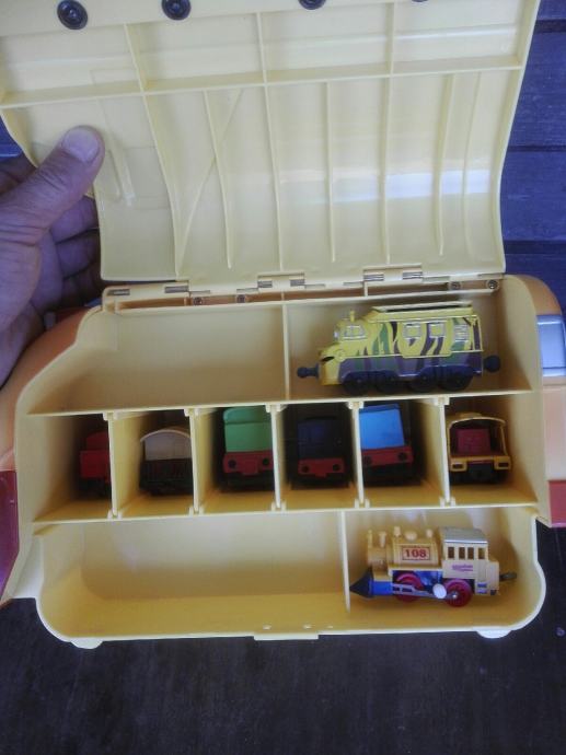 Igračke 6 male metalne lokomotive i plastični kofer u obliku lokomotiv