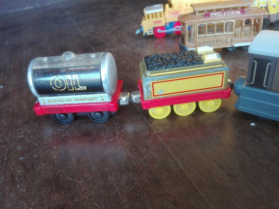 Igračke male metalne lokomotive, vagon, tender i plastični kofer. Lokomotivice su metalne. Crvena lokomotiva i vagon su matchbox. Kofer je neoštećen i pregrade se mogu izvaditi. Prodajem samo u kompletu. Sve zajedno košta 26,6€. Na sms nemogu odgovoriti, najbolje bi bilo da me nazovete 099 687 5657 ili pošaljete poruku preko Njuškala.
