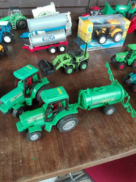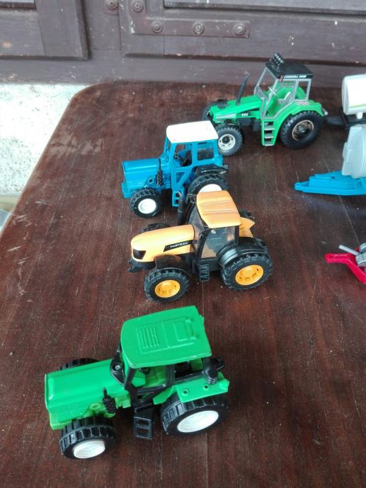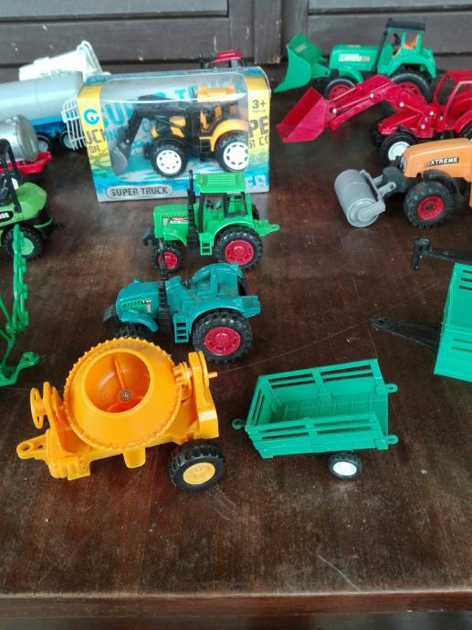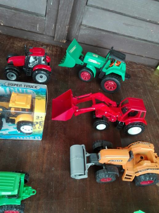 Igračke autići traktori. Prva četiri traktora su djelomično metalni, sve ostalo je plastično. Sve zajedno košta 40€. Na sms nemogu odgovoriti, najbolje bi bilo da me nazovete 099 687 5657 ili pošaljete poruku preko Njuškala.