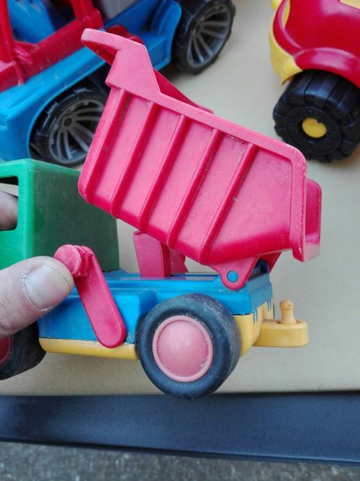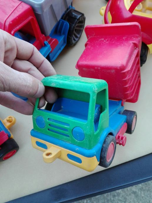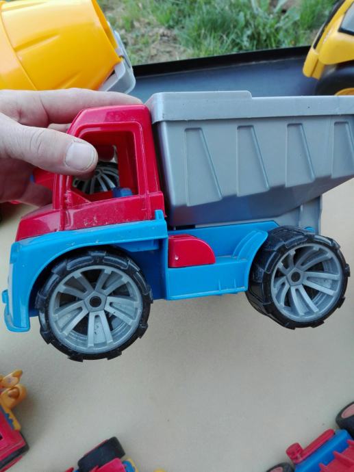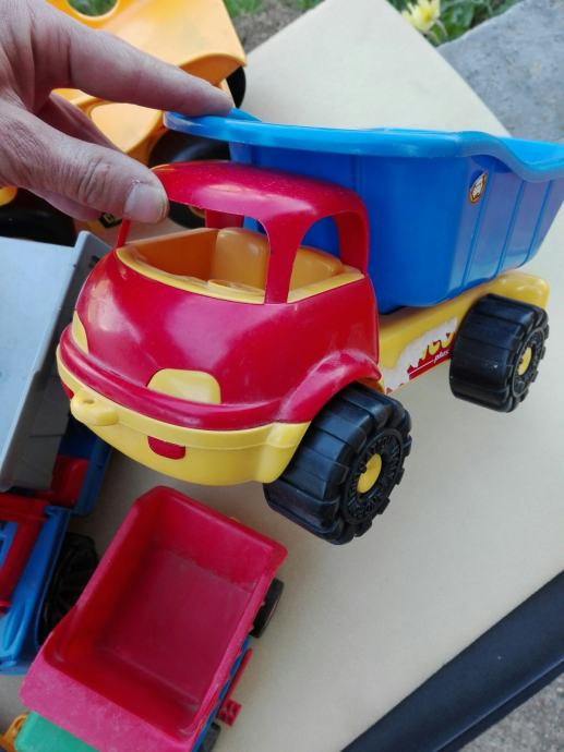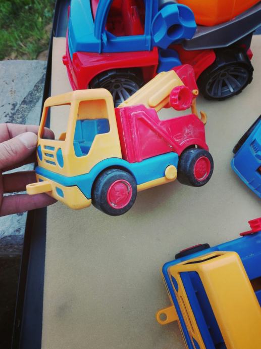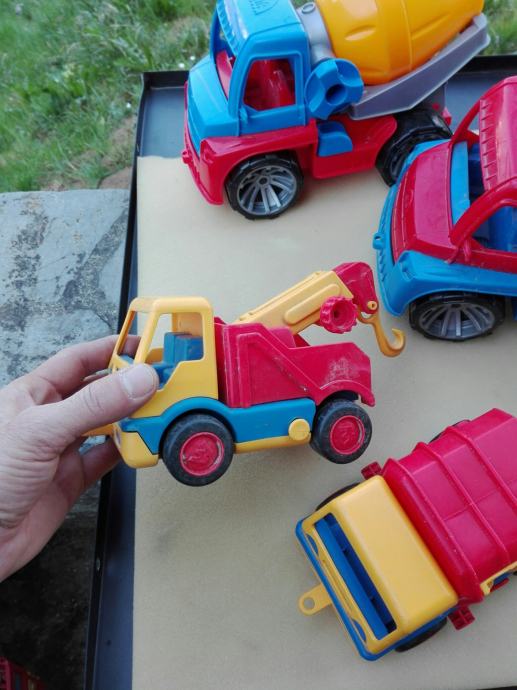 Igračke veliki autići kamioni za pijesak. Njemački proizvođači, ništa nije potrgano, dobro je očuvano, sve zajedno za 40€. Na sms nemogu odgovoriti, najbolje bi bilo da nazovete 099 687 5657 ili pošaljete poruku preko Njuškala.