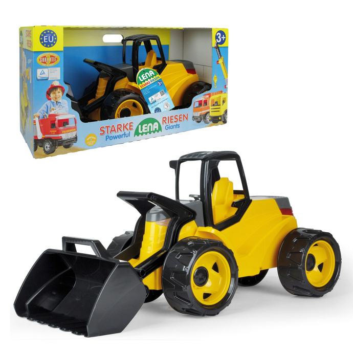 Utovarivač Pro s velikom žlicom iz Lena serije Giga Trucks impresionira svojim detaljnim dizajnom. Ergonomski oblikovana ručka omogućuje djeci jednostavno rukovanje žlicom. Mali ljubitelji građevinskih pothvata mogu koristiti veliku žlicu za utovar pijeska i kamenčića. U tren oka će sve utovariti i pretovariti. Široke gume s gaznim slojem lako prelaze preko pijeska, šljunka i trave. Stabilne osovine nose vozilo naprijed do sljedećeg gradilišta.