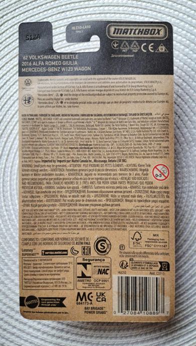 MBOX 3-pack čine tri modela: Policijsko vozilo Volkswagen Buba iz 1962., Alfa Romeo Giulia iz 2016.i Mercedes-Benz tip W123 karavan (wagon). Mini kolekcija 'Autobahn Express' je jedna od pet različitih mini kolekcija iz 2023 godine. U gornjem desnom kutu je podsjetnik na 70.obljetnicu osnutka kompanije Matchbox. Modeli su na produženom kartonu, u čvrstom blisteru. Proizvod je nov, pakiranje je u mint stanju. Proizvedeno u Thailandu