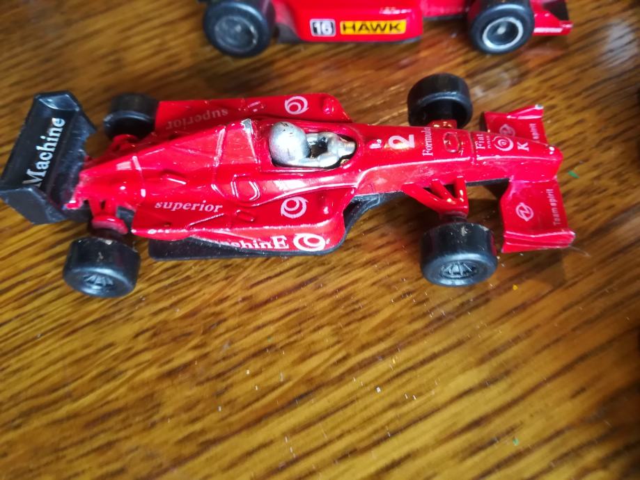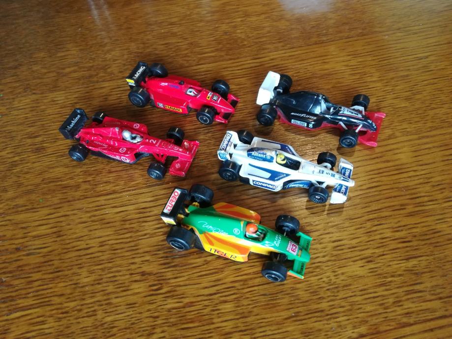 Igračke autići 5 bolida formula 1. Autići su cijeli. Sve zajedno košta 10 eura. Cijena je fiksna, na sms nemogu odgovoriti, najbolje bi bilo da me nazovete 099 687 5657 ili pošaljete poruku preko Njuškala.