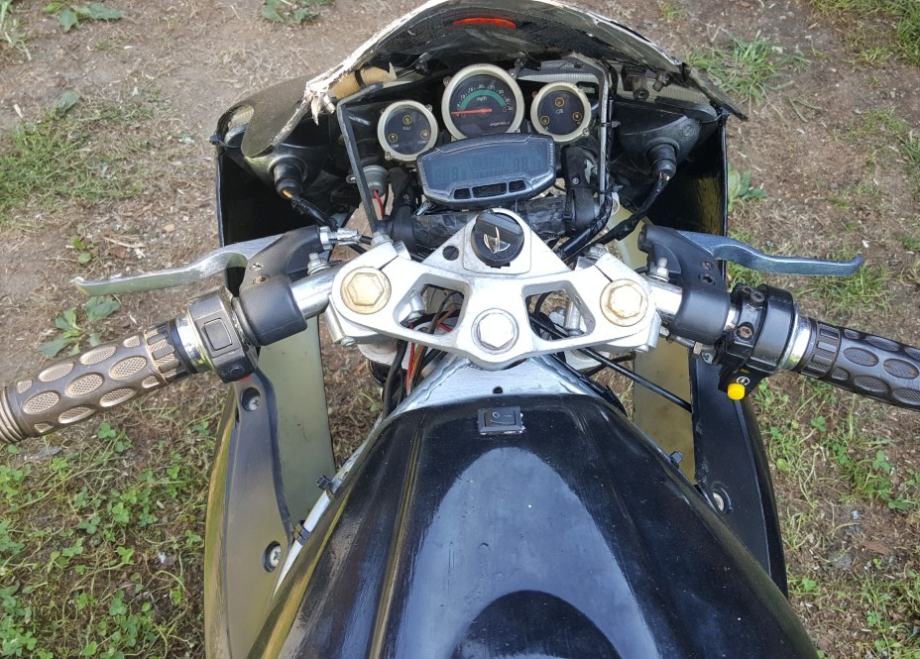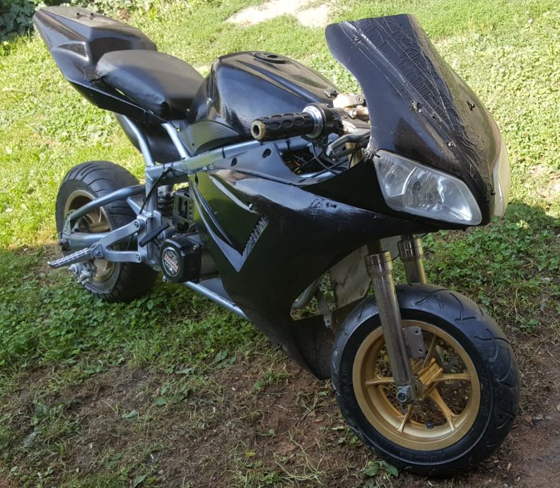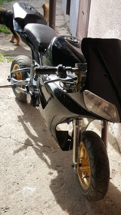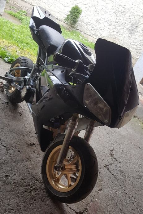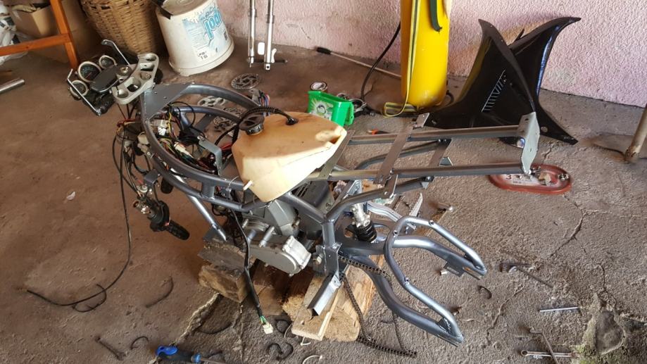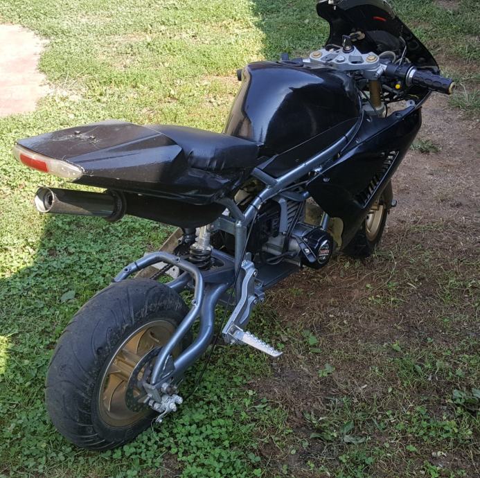 Nije skroz mali veći model je. Uloženo jako puno truda i vremena da se dovede u ovo stanje, generalno sređena mašina, dajem još jednu uz njega, ima žmigavce svijetla digitalni i analogni brzinomjer, pali na ključ (anlaser) ali fali akumulator te sada pali na poteznicu, plastike jesu malo lošije i fali prednja kočnica, jedinstven primjerak ide oko 65-75km/h. Info sms ili na kontaktiraj oglašivača radi posla.