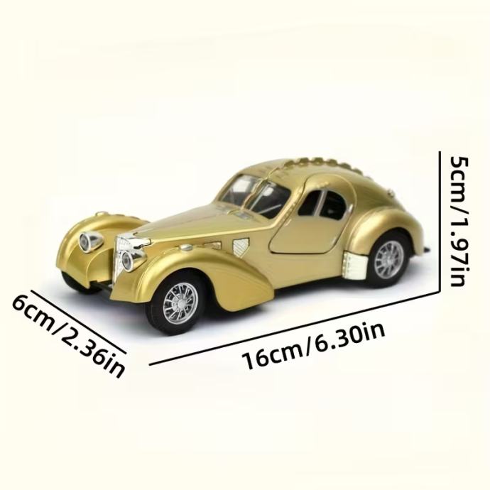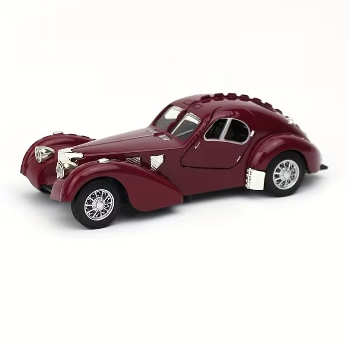 Model starodobnog automobila od titanijeve legure - Retro replika klasičnog automobila s kromiranim detaljima, crnim kotačima i crvenom unutrašnjošću - Statični izložbeni predmet za dom, ured ili kao kolekcionarski poklon, uredski dekor, elegantan dizajn, detaljna izrada