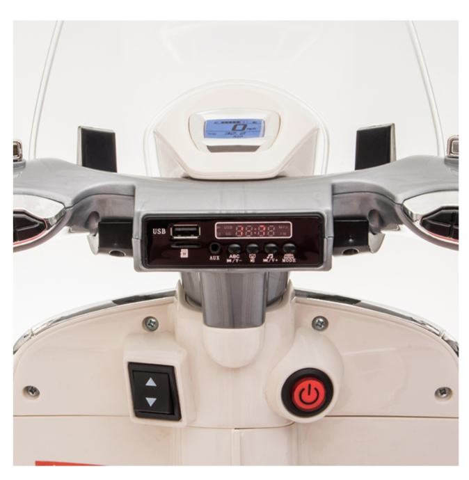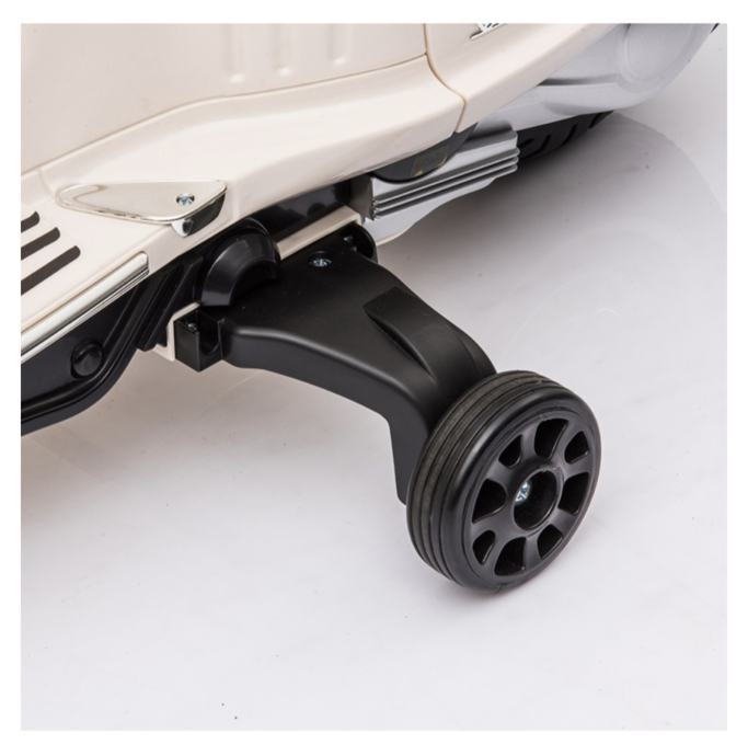 Električna Vespa izrađena je prema licenci Vespe (Piaggio). Osmišljen je za djecu i njihova izvanredna iskustva na otvorenom. Upravljanje je jednostavno jer se pokreće pritiskom papučice gasa.