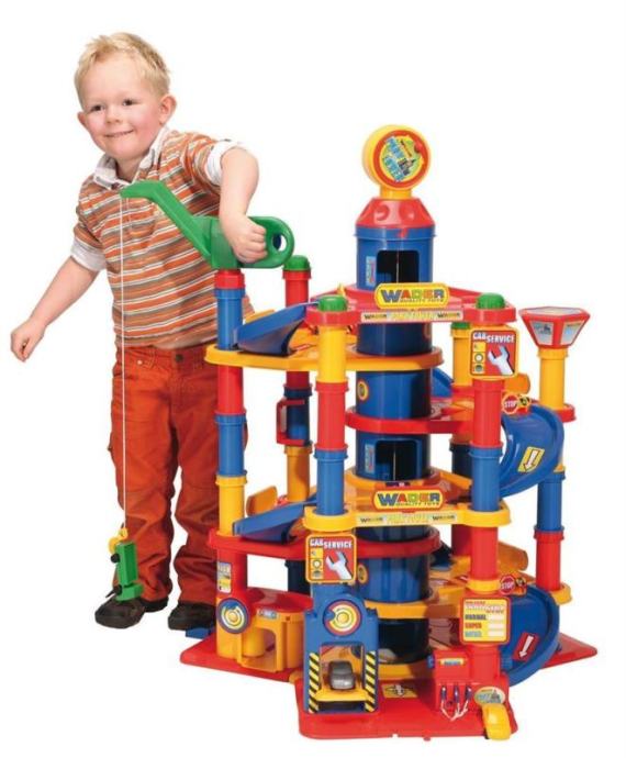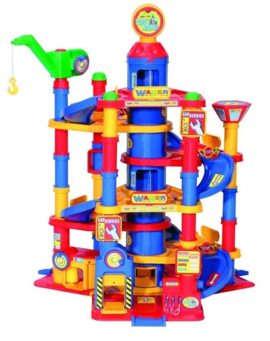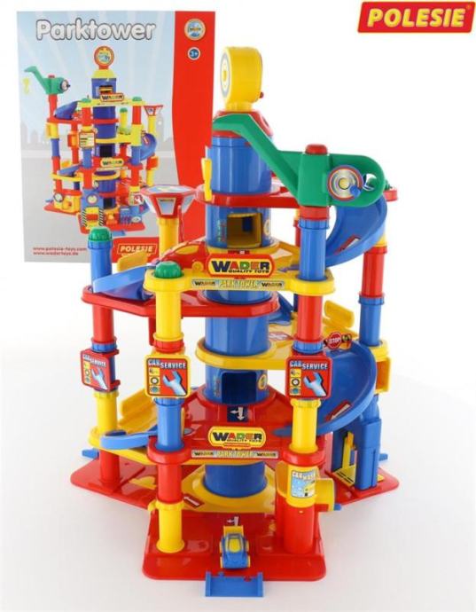 7-katni WADER Park Tower izrađen od visokokvalitetne, robusne plastike i mnoštva dodataka nudi puno zabave. Toranj je opremljen sa 7 razina i funkcionalnom autopraonicom, benzinskom postajom, dizalicom i platformom za podizanje, kojom se može upravljati pomoću ručica. U kompletu se nalaze i automobili.