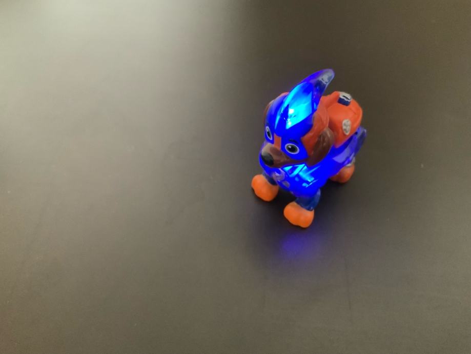Figuru Zuma koja svijetli pritiskom na gumb na ruksaku. Veličina oko 8 cm.