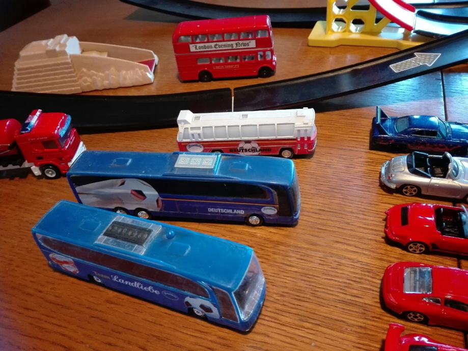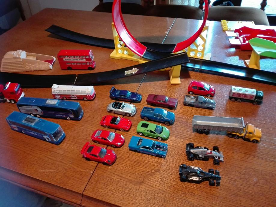 Igračka petlja, skakonica i 20 autića. Autići i oprema su super očuvani, svi su metalni. Sve zajedno košta 40€. Cijena je fiksna. Može i zamjena za razno. Na SMS nemogu odgovoriti, najbolje bi bilo da me nazovete 099 687 5657 ili pošaljete poruku preko Njuškala.