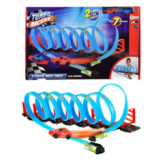 Staza sa 7 loopinga i dva autića - Turbo Racers u kutiji 50,5x32 cm