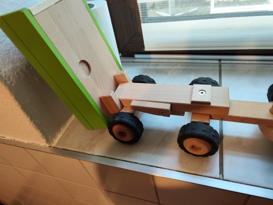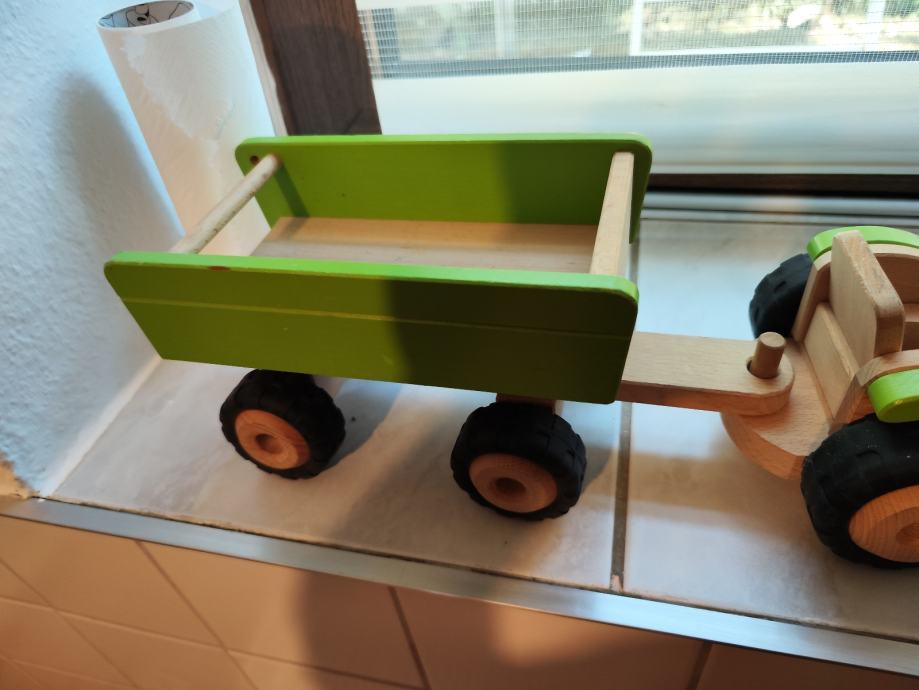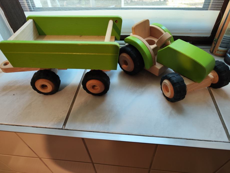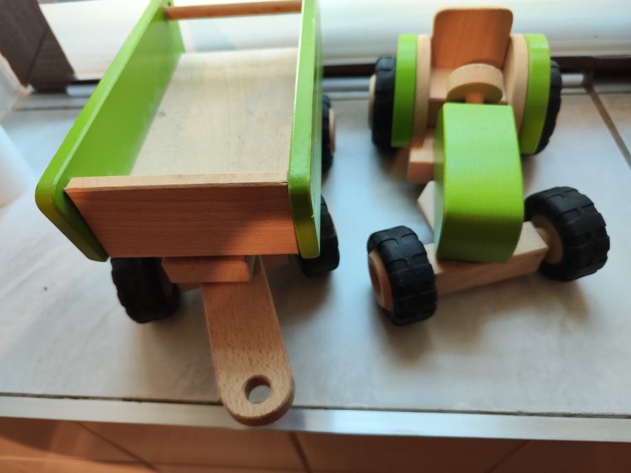 Drveni traktor s prikolicom za djecu ,idealan za vježbanje koordinacija u prostoru pošto su prednje osovine pokretne