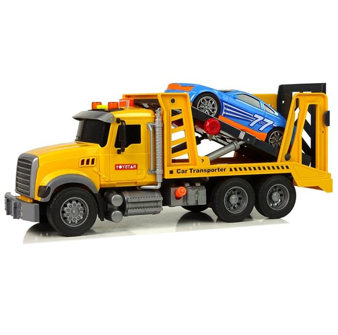 Transporter kamion dolazi u setu sa automobilom. Pomoču narančastog gumba na vrhu kabine rampa će podići automobil. Ako ga želite spustiti, morat čete pritisnuti gumb na dnu kamiona. Gumb blokira kotače kako bi se spriječilo da automobil padne s rampe. Kamion dolazi s svjetlosnim i zvučnim efektima. Za rad potrebne su 3 AG13 baterije (uključene).