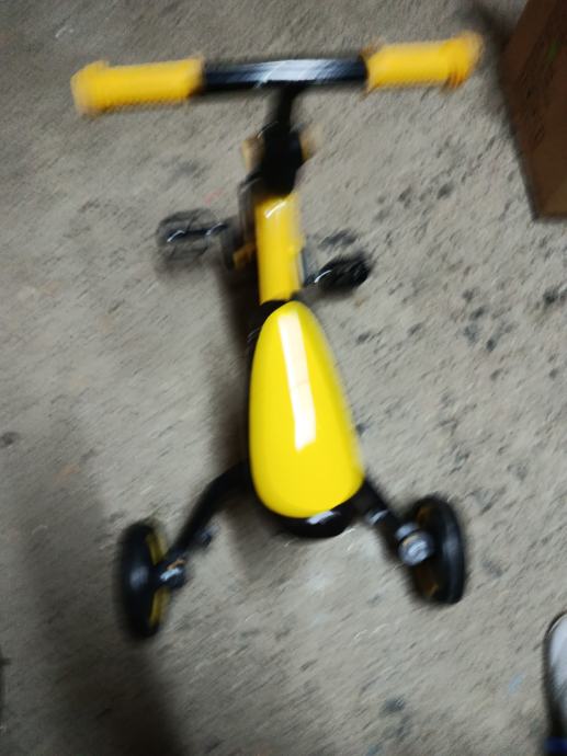 Nikad vozeni tricikl kojem se zadnji kotaci mogu skupiti pa moze sluziti kao guralica..