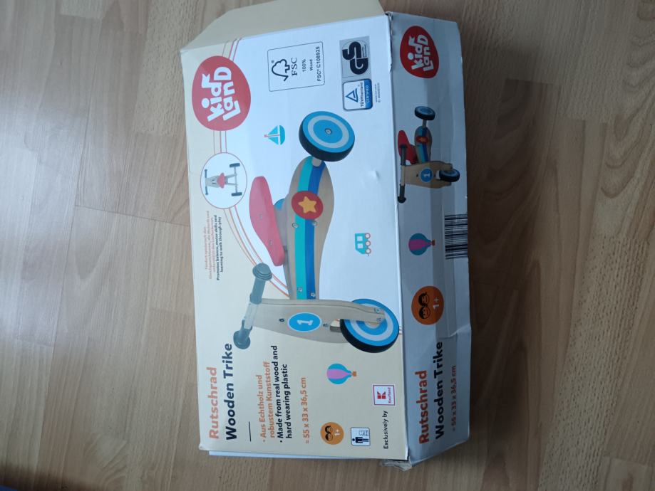Prodaje se drveni tricikl za dijete od 1+ starosti. Potpuno nov, još u original kutiji. Nikad se nije koristio jer smo imali već jedan.