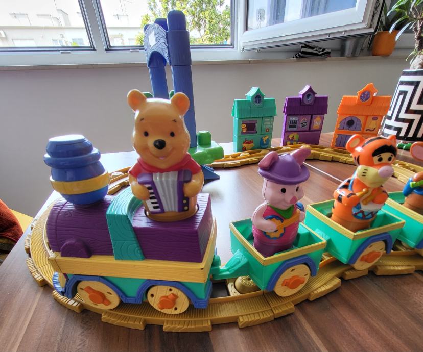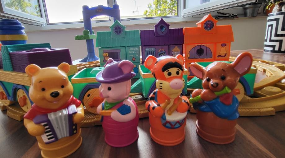 WINNIE THE POOH Mega bloks train set dječja igračka sa slikica.