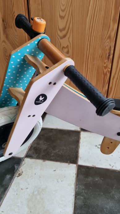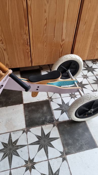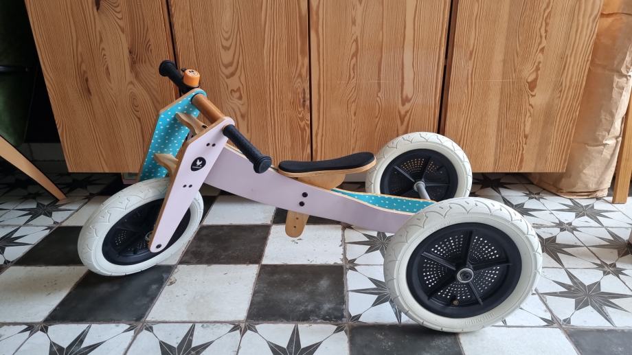 Prodajem Wishbone drveni bicikl/tricikl koji se može koristiti s tri ili s dva kotača. Može se podesiti visina bicikla pa ga djeca mogu voziti sve dok ne budu spremna za bicikl bez pomoćnih kotača. Naime, ovaj bicikl je idealana za vježbanje balansa.
