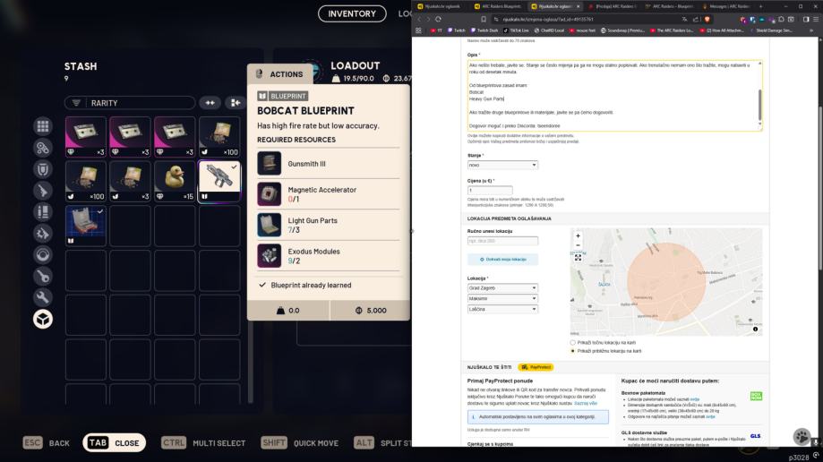 Prodajem Arc Raiders blueprints, materials, workbench materials i sve ostalo što vam treba u igri.