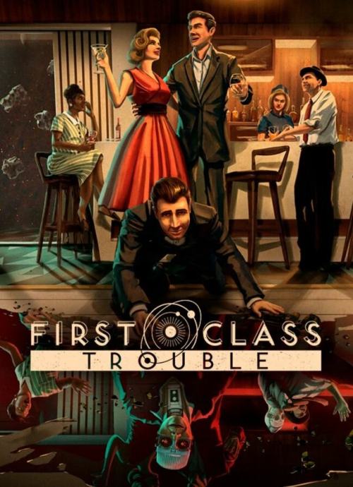 First Class Trouble is a party game where players must work together and against each other to survive a disaster.Whether you play as one of the human Residents or the rebellious Personoids, you will have to use your wit (and the occasional flying champagne bottle) to stay alive. In First Class Trouble you either deceive or deduce your way to victory in a charming, yet unsettling and often mischievous environment. Whether you do it sober or with a slight buzz, First Class Trouble will serve you a dangerous cocktail of difficult decisions and whacky possibilities.The goal is to shut down the Central Artificial Intelligence Network, also known as CAIN, of the luxurious intergalactic cruise ship ISS Alithea before it and its loyal Personoids take control of the ship.