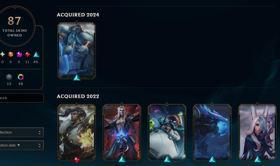 League of Legends račun - 80 skinova, EUNE, Honor 4, rijetke kolekcije
