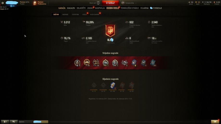Dakle prodajem World of Tanks account sa nesto vise od 3000 bitaka, unicum statistikama te TB, SH 6,8,10 i CW tenkovima