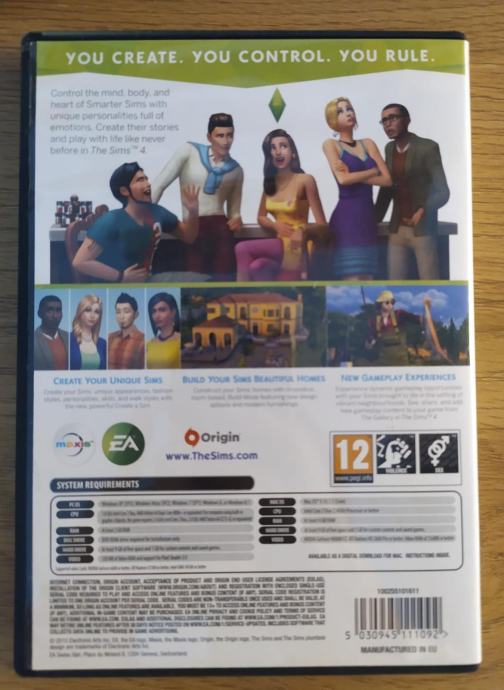 Originalni CD-i (Sims 4 base game) kupljeni preko e-kupi, a nastavci su kupljeni i preuzeti preko EA aplikacije. CD-i korišteni jednom za preuzimanje igrice na računalo, u odličnom stanju, neoštećeni (iako nisu više nužni za preuzimanje igrice, može se direktno s aplikacije).
