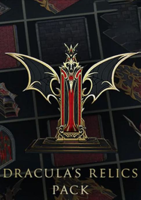 Dracula’s Relics PackEmbrace your dark legacy and project your intentions of supremacy with the Dracula’s Relics pack.Strikeout into Vardoran in iconic black, red, and gold. Don the Immortal King’s Mantle and mark yourself a commander of death with the Immortal King’s Greathelm as your battle crown. Whether on the battlefield or resting atop your extravagant throne, these colors represent a vampire with an ambition worthy of the next Dracula.Return home to a castle worthy of the scourge of Vardoran. From throne to coffin, walls to floors, carpet runs to brilliant braziers, your castle will project regality. The royal decor will project an unmistakable air of dominance, elegance, and taste.The Dracula’s Relics Pack contains: