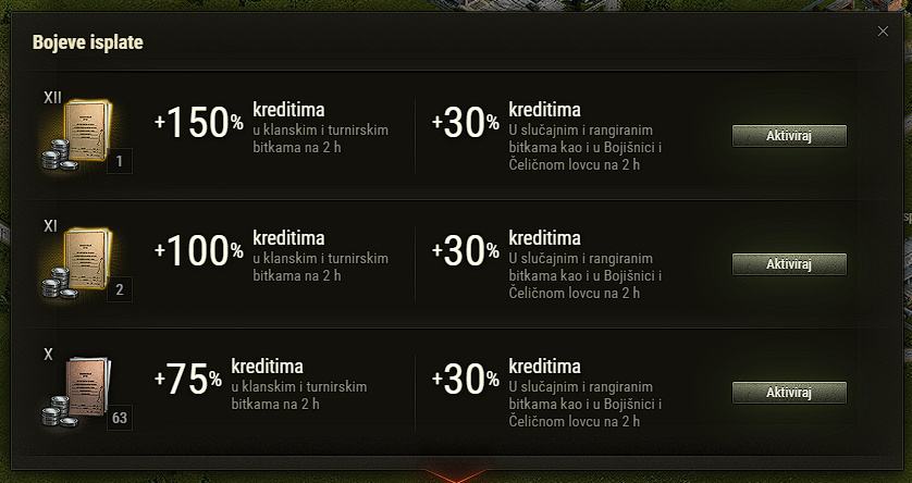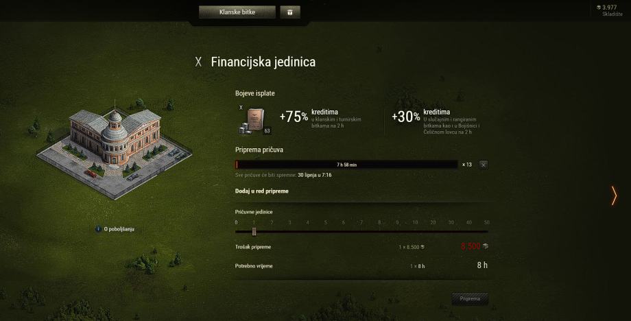 Prodajem world of tanks klan sa 89 igrača koji svojom igrom ispunjavaju zadaće ture dužnosti i time skupljaju kockice za proizvodnju boost kartica. klan ima netaknut ELO rating i şpreman je za preuzimanje. trenutno stanje kartica gotovih i koje se prave u trenutku pisanja oglasa nalazi se na slikama. stanje je promjenjivo iz dana u dan jer nove kockice stizu svakodnevno.
