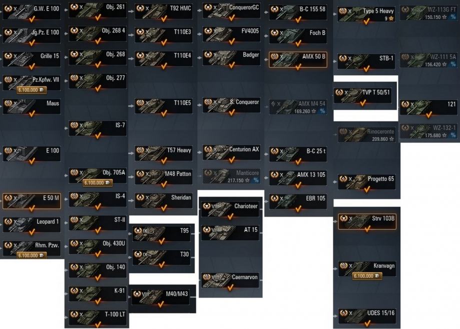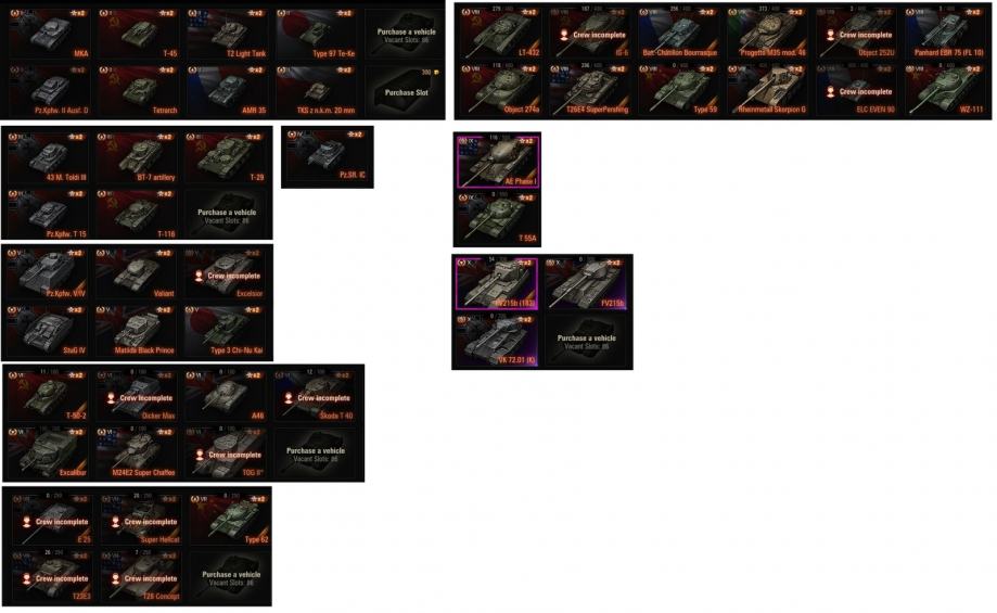-klanski tenkovi sa +4 perk posadom i ponajbolji tech tree u garaži pout T-34-85, M44, Charioteer, Caernarvon, T95, T30...
