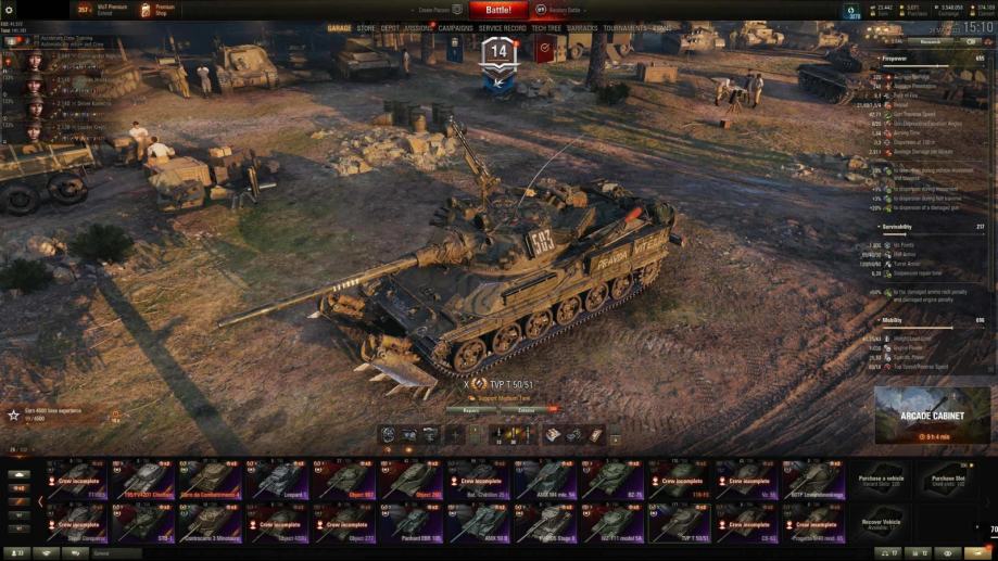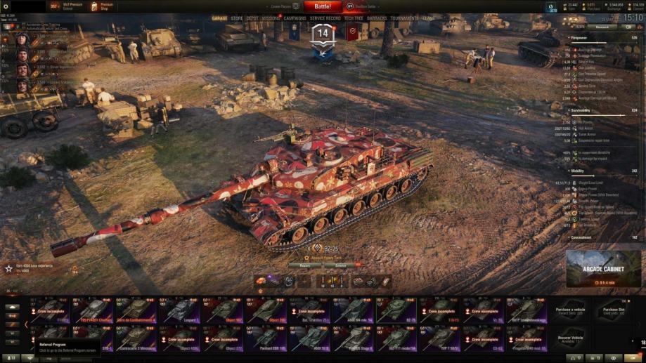 Tenkovi su sa posadom 5/6/7 perkova, a najbolji tenkovi imaju ljubičastu opremu.