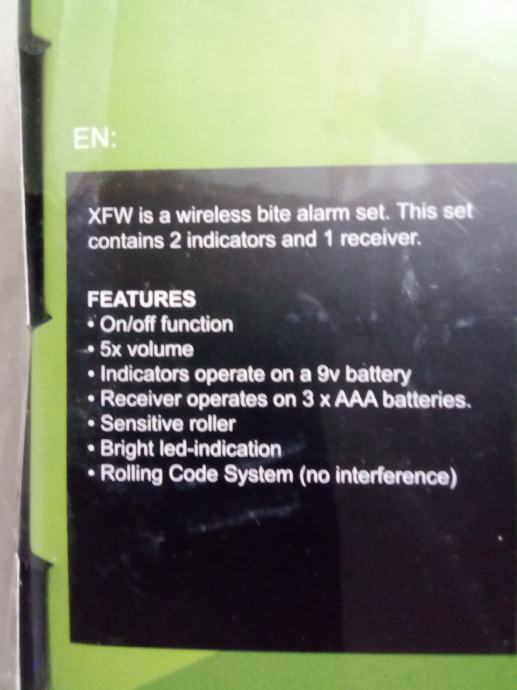 Set od 2 alarma i prijamnika.Domet 100 m.Noćni i dnevni režim rada.Različite melodije.Reagira na povlačenje i opuštanje naylona.Jednostavno rukovanje.