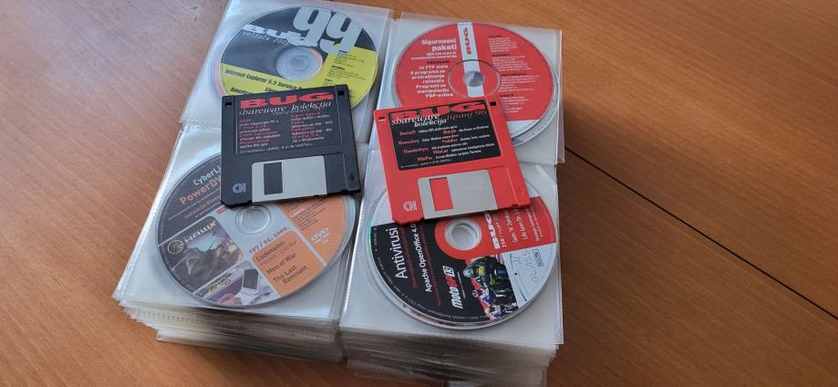 Uz njih idu sve pripadajuće diskete, CD-i i DVD-i koji su u plastičnim omotima.