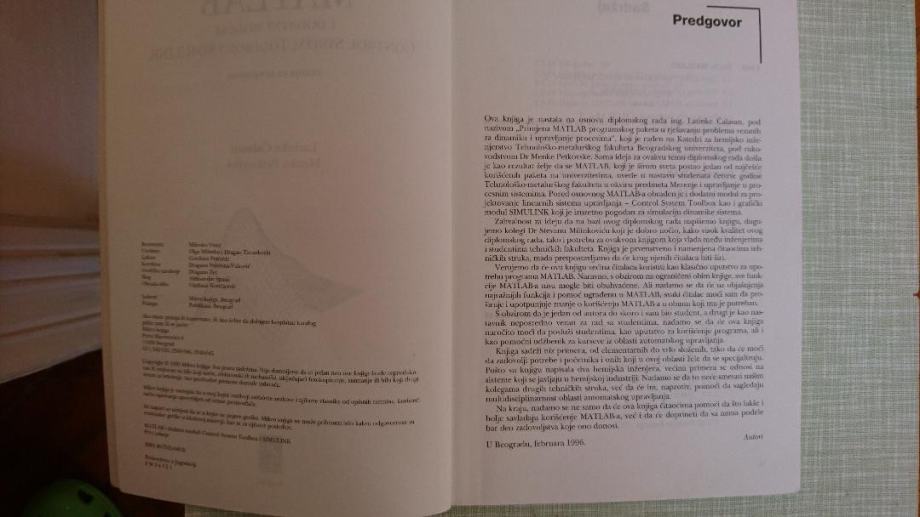 4. Latinka Ćalasan i Menka Petkovska: Matlab i dodatni moduli Control System Toolbox i Simulink; Mikro knjiga, Beograd, 1996.; meki uvez, 245 stranica.