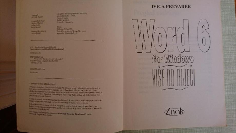2. Ivica Prevarek: Word 6 for Windows, više od riječi; Znak, Zagreb, 1994.; meki uvez, 950 stranica.