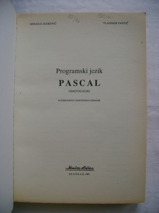 Mihailo Jauković / Vladimir Pantić - Programski jezik Pascal; osnovni kurs, 2, izmijenjeno i dopunjeno izdanje - izdavač Naučna knjiga, Beograd 1989. godine, 17 x 24 cm, meki uvez, 311 stranica.
